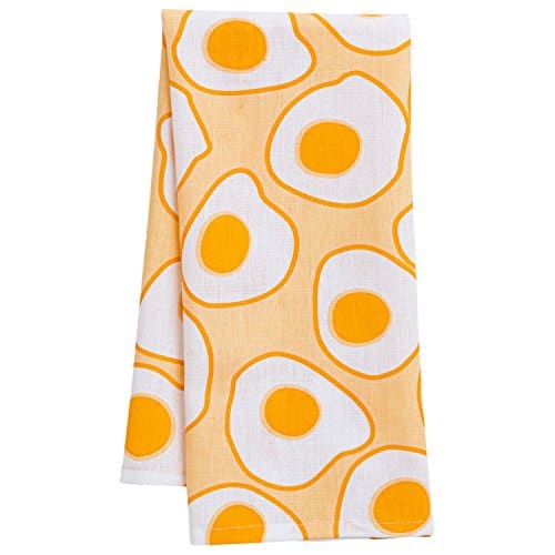 Eye catching sunny side up dish towel is a cheery addition to mornings in the kitchen